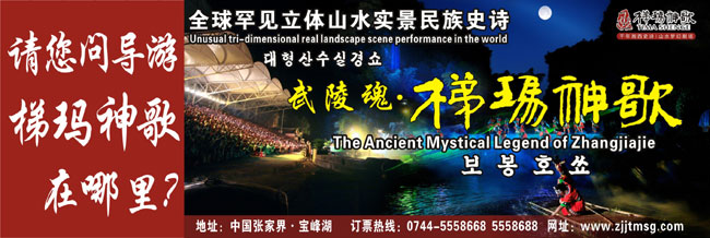 《武陵魂•梯瑪神歌》是一場記述土家族起源、演變、戰(zhàn)爭、生產生活等內容的大型立體山水實景演出,揉合了音樂、舞蹈、文學等多種藝術形式,如幻如夢的舞美燈光,搖曳生姿的原生態(tài)歌舞……濃縮了土家族數(shù)千年的發(fā)展歷史,400多名演員以自然淳樸的表演充分的展示了土家的民族文化特征,給游客帶來了耳目一新的感受。一場視聽的饕餮盛宴,一曲驚天地、泣鬼神的曠世古歌,給人山水文化光影視聽的享受!境銎罚簭埣医缣莠斏窀栉幕瘋鞑ビ邢薰尽
