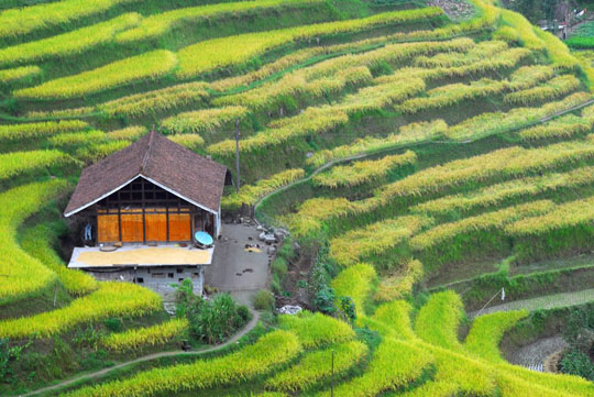 紫鵲界梯田位于湖南新化縣西部山區(qū)水車鎮(zhèn),她周邊的梯田達8萬余畝以上,其地勢之高,規(guī)模之大,形態(tài)之美,堪稱世界之最。 紫鵲界生態(tài)環(huán)境優(yōu)美,梯田密集,形態(tài)原始,阡陌縱橫,線條流暢,山高水長,板屋交錯,充分展示出梯田的自然美、古樸美、形體美、文化美。尤其是隨著四季氣候的變化,使紫鵲界梯田更加婀娜多姿,如臨人間仙境。水奉公路盤旋于這些梯田之間達十余公里,梯田遍布于海撥500米至1000余米的十幾個山頭上,最大的不過1畝,最小的只能插幾十蔸禾,連綿起伏,輾轉(zhuǎn)盤旋,可謂是儀態(tài)萬方,令人贊嘆不已。
