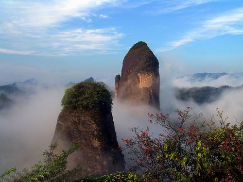 | 莨山,位于湖南省新寧縣境內(nèi)。南與桂林相連,北與張家界呼應(yīng),是國(guó)內(nèi)最為典型的丹霞地貌風(fēng)景區(qū),是國(guó)家重點(diǎn)風(fēng)景名勝區(qū),又是國(guó)家地質(zhì)公園,總面積108平方公里,轄紫霞峒、 扶夷江、駱駝峰、牛鼻寨、八角寨五大景區(qū),地質(zhì)結(jié)構(gòu)奇特,山、水、林、洞渾然一體。境內(nèi)有形神兼?zhèn)涞膶④娛⑽┟钗┬さ鸟橊劮、鬼斧神工?天下第一巷"、地造天設(shè)的鯨魚鬧海、氣勢(shì)磅礴堪稱亞洲第一的天生橋、高聳入云而又十分逼真的辣椒峰,這便是嘆為觀止的莨山六絕,這是大自然對(duì)莨山的恩賜,每一絕都舉世無(wú)雙。莨山還生長(zhǎng)繁衍著銀杉、珙桐、華南虎、云豹、靈貓、大鯢等珍稀動(dòng)植物,也為莨山的天然景色增添了無(wú)限靈動(dòng)與生氣。這里出土有10萬(wàn)年前的獼猴頭骨化石,有4500年前的新石器文化遺址,有清化農(nóng)民起義的寨堡,有晚清重臣劉坤一、劉長(zhǎng)佑、江忠源的宗祠、墓葬,有異彩紛呈的民族風(fēng)情,有膾炙人口的華采詩(shī)賦,明代縣人陳永猷留下了"夫夷(新寧古稱)勝景天成就,攝杖歸來(lái)入夢(mèng)頻"的美譽(yù),著名詩(shī)人艾青留下了"桂林山水甲天下,莨山山水賽桂林"的喟嘆。