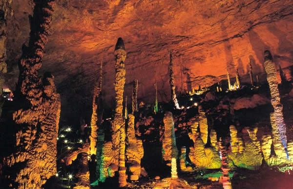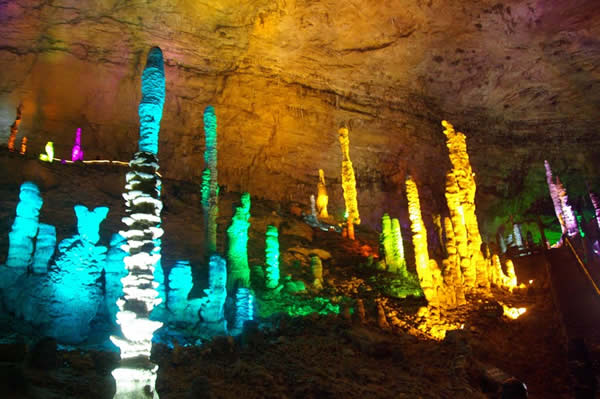 萬畝糧田 黃龍洞位于索溪峪東面,被稱為“地下魔宮”,洞口霧靄迷漫,洞內長廊蜿蜒,鐘乳懸浮,石柱石筍林立,還有石簾、石幔、石花、石琴,琳瑯滿目,異彩紛呈,令人目不暇接。“洞外洞”、“樓外樓”、“天外天”、“山外山”,盤根錯節(jié)。黃龍洞內可分四層,水陸并進,從最低陰河至最高穹頂,垂直高度差有100多米,洞內有一個水庫(黃龍水洞)、二條陰河(響水河、水晶河)、三個地下瀑布(黃龍瀑、天水瀑、天地瀑)、四個水潭、十三個廳(宮)(龍舞宮、水晶宮、迷人宮……)、九十六條游廊,長度約達15公里,最大的廳堂有12000平方米,可容納萬人。真可謂是洞中乾坤大,地下有洞天。入黃龍洞,如入人間仙境一般。 |