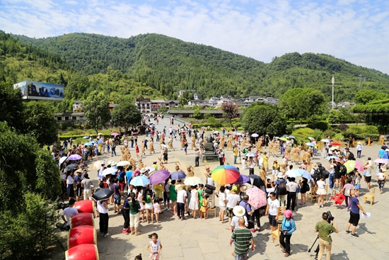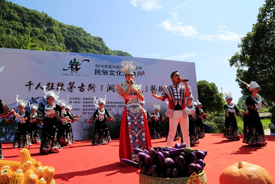 7月29日上午9點30分,由張家界市人民政府主辦,張家界市委宣傳部、市旅游和外事僑務委員會、市文體廣電新聞出版局、武陵源區(qū)人民政府承辦,黃龍洞景區(qū)協(xié)辦的“絕版張家界,最炫民族風”張家界民俗活動月第三場活動在黃龍洞景區(qū)啟動。現(xiàn)場以土家人慶祝豐收的鼓舞拉開序幕,土家鼓舞歡悅的節(jié)奏,夸張的舞姿開場就吸引了幾千游人和當?shù)厝擞^看。草根夫妻檔歌手,張家界“山水組合許勇、舒維亮麗的服飾,野性的嗓音……”以一首《我在高山唱》歌曲,征服現(xiàn)場游客,贏得雷鳴般的叫好聲。