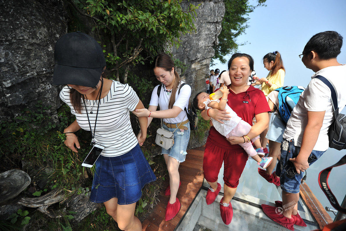 8月1日,天門山景區(qū)第三條玻璃棧道——盤龍崖玻璃棧道開(kāi)通迎客。玻璃棧道全長(zhǎng)100米、寬1.6米,因站在玻璃棧道上能俯瞰天門山99道彎盤山公路而得名“盤龍崖玻璃棧道”。該玻璃棧道以其絕壁凌空的恢弘氣勢(shì)和令人頭暈?zāi)垦5囊曈X(jué)感受備受游客青睞。