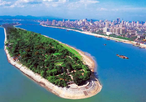 【橘子洲】:位于湘江長沙段江心,是世界上最大的內陸洲,橘子洲介名山城市間,浮裊裊凌波上,被譽為“中國第一洲”,橘子洲以成片桔園為綠化主體,雜檀名貴花木,風景秀麗,環(huán)境清幽,融綠化、美化、香化、凈化為一體,觀山、觀水、觀桔、觀花各有千秋。